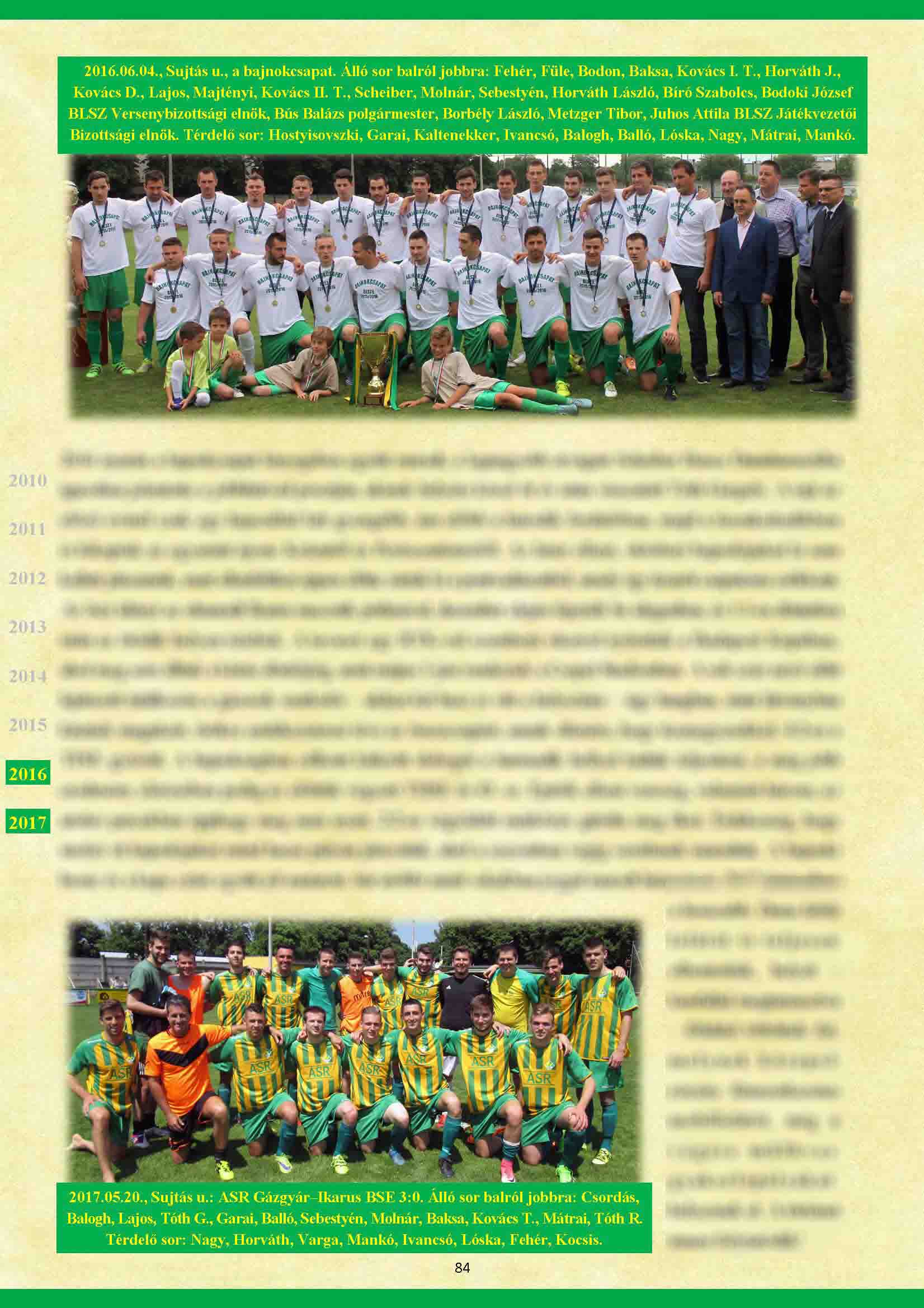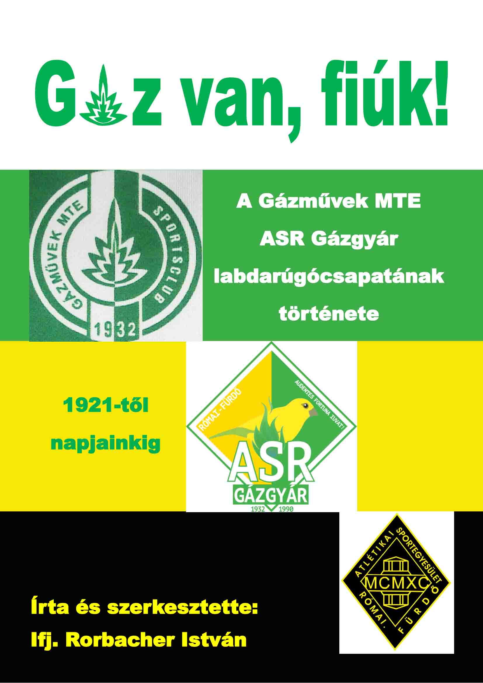 Felnőtt I. 30. forduló meccs eredménye itt, a képek és a beszámoló itt és itt! Felnőtt II. 26. fordulóbeli meccs eredménye itt! Kedves Szurkolóink, Szimpatizánsaink! Hét év előkészítő munka után 05.18-án kézhez kaptam a könyvet, amibe szivemet, lelkemet beleadtam. Aki szeretne belőle példányt, az a soron következő három bajnoki mérkőzésünk előtt és után a Sujtás utcában megvásárolhatja, anyagköltségen. 360 színes A4-es oldal, több mint 300 képpel, klubtörténettel, interjúkkal, visszaemlékezésekkel, játékosnévsorokkal, tabellákkal, bajnoki eredményekkel és sok más kiegészítő anyaggal. Hajrá ASR! Hajrá Gáz!
