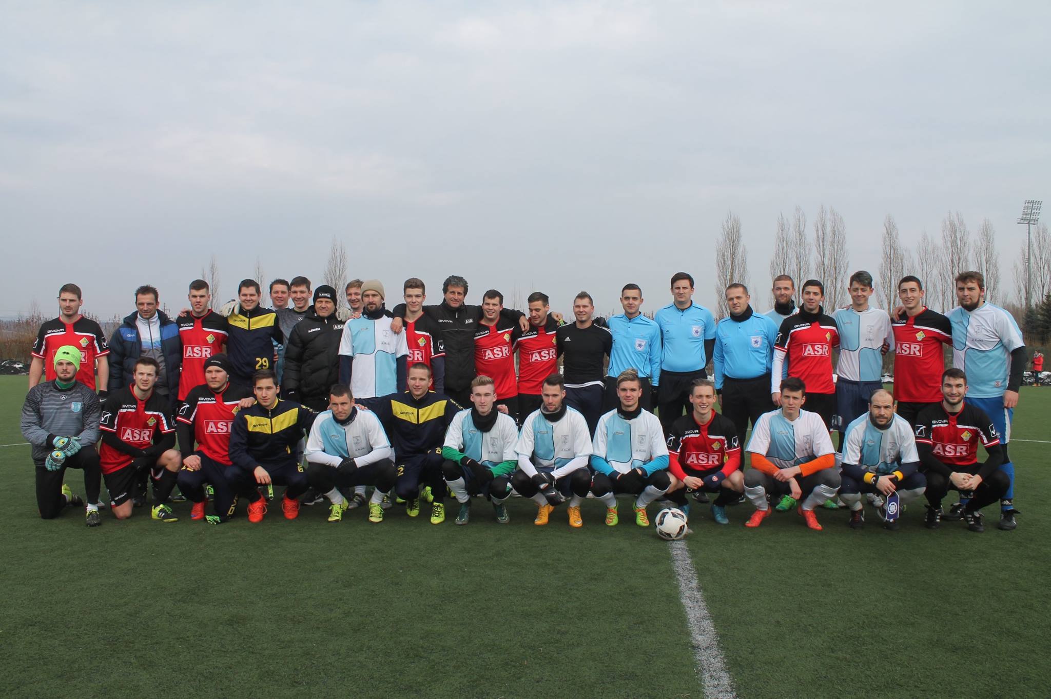 Budapest Kupa 3. forduló: 2017.02.18. (szombat) 14:30, Bátony utca (Ikarus műfű): RTK - ASR Gázgyár 0-5 (0-1) (Gólszerzőink: Balló (2), Ivancsó, Tóth, Fehér) Néhány soros összefoglaló itt! Élménybeszámoló első csapatunk aranyosmaróti kirándulásáról: Idei felkészülési mérkőzéseink sorát – rendhagyó módon – egy felvidéki edzőmeccsel tettük színesebbé. A lehetőség együttesünk játékosa, Molnár Attila és szülei révén adódott, akik a jelenlegi országhatártól közel húsz kilométerre fekvő Oroszkán laknak. A helyszín a szlovák első osztályban szereplő Aranyosmarót (Zlate Moravce) stadionja melletti műfüves pálya volt, ahol a helyi megye kettő csoportját vezető Lokomotíva Kozárovce (Garamkovácsi) együttesével találkoztunk. Szombat reggel 8:15-8:30 között gyülekeztünk a pályánkon, ahonnan közel teljes játékos-létszámmal, a vezetői stáb mellett néhány törzsszurkolóval megerősítve, busszal indultunk útnak a mintegy két és fél óra távolságra lévő Aranyosmarótra. A Pilis festői, helyenként még havas-zúzmarás vonulatain keresztül érkeztünk meg Esztergomba, majd a Mária Valéria hídon át Párkányba. Itt a kelleténél több időt vesztegettünk el arra, hogy sikerüljön útdíjmatricához jutni, de három sikeretlen kísérlet után a negyedik helyen már szerencsénk volt, és folytathattuk utunkat, viszont sietnünk kellett, mert a találkozó eredeti kezdőidőpontja 12:30-ra esett. Buszunk végül 12:00-kor gurult be a stadion mellé, ahol még javában álltak a korábban összetolt, el nem olvadt hókupacok. Játékosaink siettek az öltözőbe, míg a többiek lassacskán elindultak az edzőpálya felé, ahol ezúttal örömmel akceptálhatták, hogy az előző találkozó még zajlik, és szűk félórás csúszásban van. Játékosaink tehát nyugodtan be tudtak melegíteni, bár mindehhez elég kevés szabad tér társult. Ellenfelünk kék-fehér hazai szerelésében vonult fel az összecsapásra, míg mi piros-fekete idegenbeli szerelésünket húztuk fel. A kezdősípszó elhangzása előtt, együttes szándékként közös csapatfotók készültek, illetve a két csapakapitány zászlót cserélt. Rögtön az elejétől egész hajtós, élvezetes játékot produkált a két együttes a közel húsz érdeklődő jelenlétében, és olykor egész kemény összecsapásoknak is tanúi lehettünk, de azért érezhetően vigyáztak egymásra a játékosok. Valamivel nálunk volt többet a labda, azonban csak egy helyzetig jutottunk (igaz, az ellenfél addig sem), amikor egy kiugratásunk után Mátrai Dominik egyedül vihette a kapusra a labdát, aki végül a hálóőrbe lőtte azt. A második játékrészben több lehetőségünk adódott, főleg Kovács Tibi szöglet utáni fejesei rejtettek nagyobb veszélyt magukban, mint ami végül lett belőlük. A végére elfáradó ellenfelünknek egy komolyabb momentuma akadt, de a beadásukat közelről kapunk fölé lőtték. A hajrában közel álltunk ahhoz, hogy a magunk javára fordítsuk a mérkőzést, ám végül nyolcan perc (merthogy ennyit játszottunk) játék után 0-0 maradt az állás. A fiúk gyorsan átöltöztek, és buszra szállva már indultunk is visszafelé, hogy mihamarabb Oroszkára érjünk, ahol a Felvidék egyik (ha nem a legnagyobb, alapvetően) második világháborús magángyűjteményének múzeumában láttak vendégül bennünket Molnár Attila szülei. A koccintás és az aperitif elfogyasztása után jött a finom leves, amit elsőrangú hidegtálak követtek (disznótoros, knédli, káposzta, vadhús, savanyúság), amiktől mindenki jól lakhatott. Ezután a múzeum tulajdonosa, Zsákovics László szakértő tárlatvezetésével végigbarangoltunk a közel 900 m2-en elterülő gyűjteményt, ami végső soron a közel három hónapig dúló Garam-menti harcoknak állít emléket. Itt az eredeti, működő T 34-estől kezdve, a német MG 34-es és 42-es géppuskán keresztül, a környéken a korábbi évtizedekben előkerült, jórészt kiásott, majd a múzeumnak adott relikviákig bezárólag rengeteg mindent megtalálhatunk (ez itt a reklám helye: http://www.mhmo.sk/hu/). A fogadóhelyiségbe visszatérve átadtuk ajándékainkat vendéglátóinknak, és közösen elénekeltünk a Nélküled című számot, majd a magyar himnuszt, amik sokunknak könnyeket csaltak a szemeinkbe. Jó érzés volt magyarnak lenni! Rövidebb beszélgetés után, zárásként a közös „csapatfotó” sem maradhatott el. Sajnos sokáig nem maradhattunk, mert a buszunk 20:00-kor indult vissza a Gáz-pályára, ahova 22:00 körül érkeztünk meg. Köszönjük szépen még egyszer mindenkinek a szívélyes vendéglátást és ezt a csodálatos napot! Reméljük sok, hasonlóan jó élményben lesz részünk a tavaszi idény során is!
