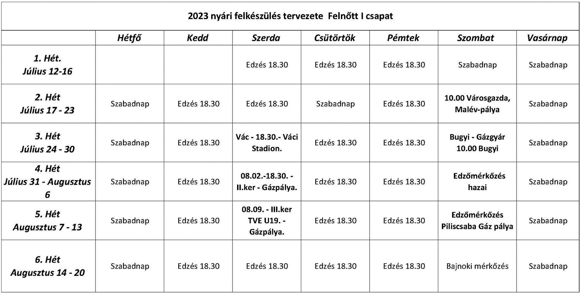 Első csapatunk felkészülési programjának aktuális állapota (07.16.): júl. 16. hétfő 18:30