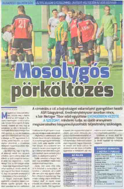 Felnőtt I. 9. forduló meccs eredménye itt, a beszámoló itt, a képek itt! Felnőtt II. 7. forduló meccs eredménye itt! A Pesti Foci beharangozója a 9. fordulóról: http://www.pestifoci.hu/index.php/tovabbi-friss-hirek-uj/4037-blsz1-jon-a-f-fordulo-9-w-er Nagyon köszönünk mindent Meci! Az ASR Gázgyár közleménye: Kettes csapatunk már új mezben győzött a hétvégén: