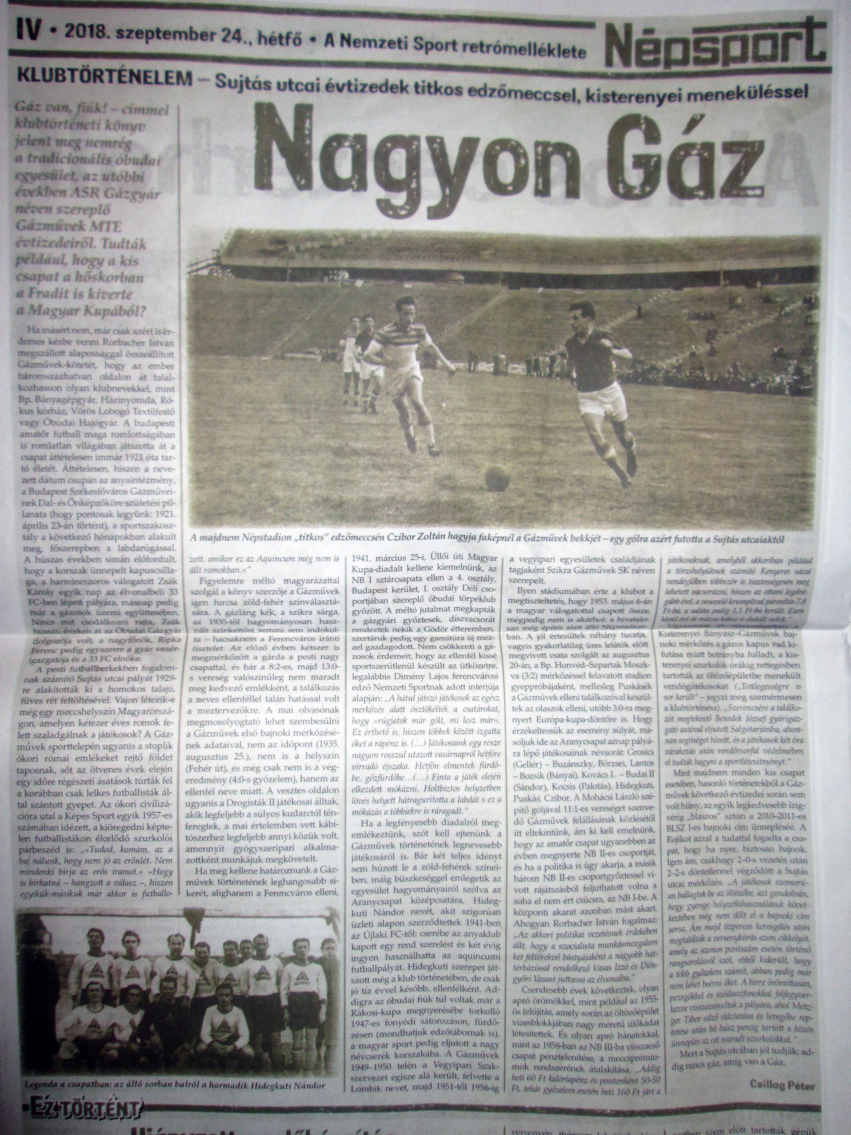 3/3: Interjú szakmai vezetőnkkel, Borbély Lászlóval itt! 2/3: Interjú első csapatunk őszi házi gólkirályával, Kocsis Balázzsal itt! 1/3: Interjú első csapatunk vezetőedzőjével, Sólyom Ferenccel itt! Szomorú szívvel tudatjuk, hogy Tóvízi Árpád, 47 éve állandó szurkolónk, december 15-én, csütörtökön, életének hatvanadik évében elhunyt. A vele a Gáz van, fiúk! című könyvben megjelent interjú itt most letölthető. Árpi! Isten Veled! Nagyon fogsz hiányozni! :(''' Árpi temetése január 10-én (kedden) 11:00-kor lesz az Óbudai temető szóróparcellájában.