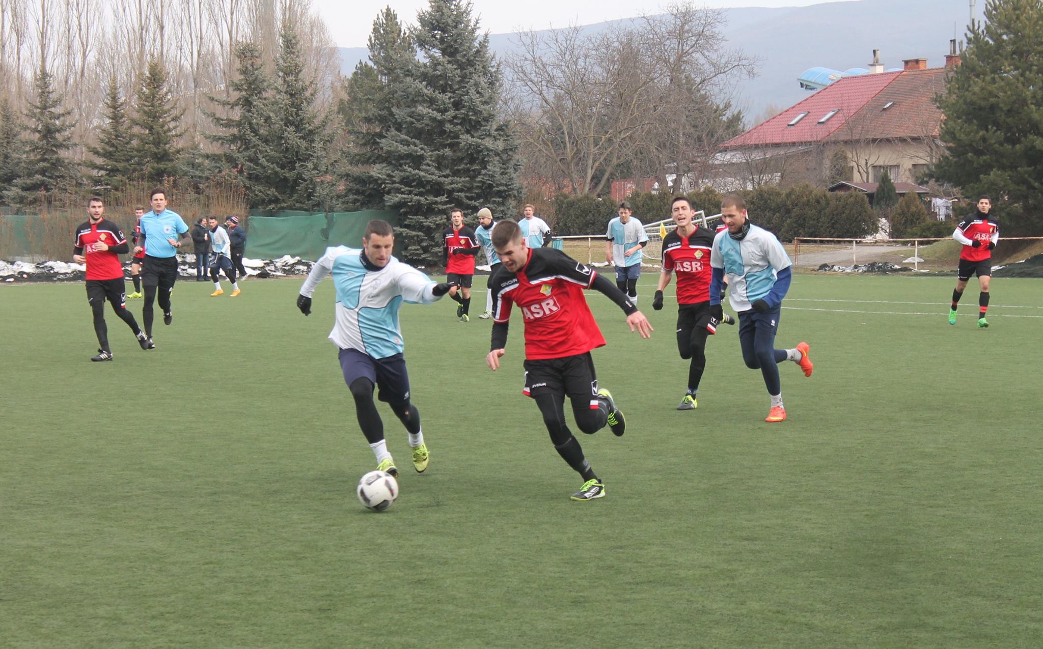 Budapest Kupa 3. forduló: 2017.02.18. (szombat) 14:30, Bátony utca (Ikarus műfű): RTK - ASR Gázgyár 0-5 (0-1) (Gólszerzőink: Balló (2), Ivancsó, Tóth, Fehér) Néhány soros összefoglaló itt! Élménybeszámoló első csapatunk aranyosmaróti kirándulásáról: Idei felkészülési mérkőzéseink sorát – rendhagyó módon – egy felvidéki edzőmeccsel tettük színesebbé. A lehetőség együttesünk játékosa, Molnár Attila és szülei révén adódott, akik a jelenlegi országhatártól közel húsz kilométerre fekvő Oroszkán laknak. A helyszín a szlovák első osztályban szereplő Aranyosmarót (Zlate Moravce) stadionja melletti műfüves pálya volt, ahol a helyi megye kettő csoportját vezető Lokomotíva Kozárovce (Garamkovácsi) együttesével találkoztunk. Szombat reggel 8:15-8:30 között gyülekeztünk a pályánkon, ahonnan közel teljes játékos-létszámmal, a vezetői stáb mellett néhány törzsszurkolóval megerősítve, busszal indultunk útnak a mintegy két és fél óra távolságra lévő Aranyosmarótra. A Pilis festői, helyenként még havas-zúzmarás vonulatain keresztül érkeztünk meg Esztergomba, majd a Mária Valéria hídon át Párkányba. Itt a kelleténél több időt vesztegettünk el arra, hogy sikerüljön útdíjmatricához jutni, de három sikeretlen kísérlet után a negyedik helyen már szerencsénk volt, és folytathattuk utunkat, viszont sietnünk kellett, mert a találkozó eredeti kezdőidőpontja 12:30-ra esett. Buszunk végül 12:00-kor gurult be a stadion mellé, ahol még javában álltak a korábban összetolt, el nem olvadt hókupacok. Játékosaink siettek az öltözőbe, míg a többiek lassacskán elindultak az edzőpálya felé, ahol ezúttal örömmel akceptálhatták, hogy az előző találkozó még zajlik, és szűk félórás csúszásban van. Játékosaink tehát nyugodtan be tudtak melegíteni, bár mindehhez elég kevés szabad tér társult. Ellenfelünk kék-fehér hazai szerelésében vonult fel az összecsapásra, míg mi piros-fekete idegenbeli szerelésünket húztuk fel. A kezdősípszó elhangzása előtt, együttes szándékként közös csapatfotók készültek, illetve a két csapakapitány zászlót cserélt. Rögtön az elejétől egész hajtós, élvezetes játékot produkált a két együttes a közel húsz érdeklődő jelenlétében, és olykor egész kemény összecsapásoknak is tanúi lehettünk, de azért érezhetően vigyáztak egymásra a játékosok. Valamivel nálunk volt többet a labda, azonban csak egy helyzetig jutottunk (igaz, az ellenfél addig sem), amikor egy kiugratásunk után Mátrai Dominik egyedül vihette a kapusra a labdát, aki végül a hálóőrbe lőtte azt. A második játékrészben több lehetőségünk adódott, főleg Kovács Tibi szöglet utáni fejesei rejtettek nagyobb veszélyt magukban, mint ami végül lett belőlük. A végére elfáradó ellenfelünknek egy komolyabb momentuma akadt, de a beadásukat közelről kapunk fölé lőtték. A hajrában közel álltunk ahhoz, hogy a magunk javára fordítsuk a mérkőzést, ám végül nyolcan perc (merthogy ennyit játszottunk) játék után 0-0 maradt az állás. A fiúk gyorsan átöltöztek, és buszra szállva már indultunk is visszafelé, hogy mihamarabb Oroszkára érjünk, ahol a Felvidék egyik (ha nem a legnagyobb, alapvetően) második világháborús magángyűjteményének múzeumában láttak vendégül bennünket Molnár Attila szülei. A koccintás és az aperitif elfogyasztása után jött a finom leves, amit elsőrangú hidegtálak követtek (disznótoros, knédli, káposzta, vadhús, savanyúság), amiktől mindenki jól lakhatott. Ezután a múzeum tulajdonosa, Zsákovics László szakértő tárlatvezetésével végigbarangoltunk a közel 900 m2-en elterülő gyűjteményt, ami végső soron a közel három hónapig dúló Garam-menti harcoknak állít emléket. Itt az eredeti, működő T 34-estől kezdve, a német MG 34-es és 42-es géppuskán keresztül, a környéken a korábbi évtizedekben előkerült, jórészt kiásott, majd a múzeumnak adott relikviákig bezárólag rengeteg mindent megtalálhatunk (ez itt a reklám helye: http://www.mhmo.sk/hu/). A fogadóhelyiségbe visszatérve átadtuk ajándékainkat vendéglátóinknak, és közösen elénekeltünk a Nélküled című számot, majd a magyar himnuszt, amik sokunknak könnyeket csaltak a szemeinkbe. Jó érzés volt magyarnak lenni! Rövidebb beszélgetés után, zárásként a közös „csapatfotó” sem maradhatott el. Sajnos sokáig nem maradhattunk, mert a buszunk 20:00-kor indult vissza a Gáz-pályára, ahova 22:00 körül érkeztünk meg. Köszönjük szépen még egyszer mindenkinek a szívélyes vendéglátást és ezt a csodálatos napot! Reméljük sok, hasonlóan jó élményben lesz részünk a tavaszi idény során is!
