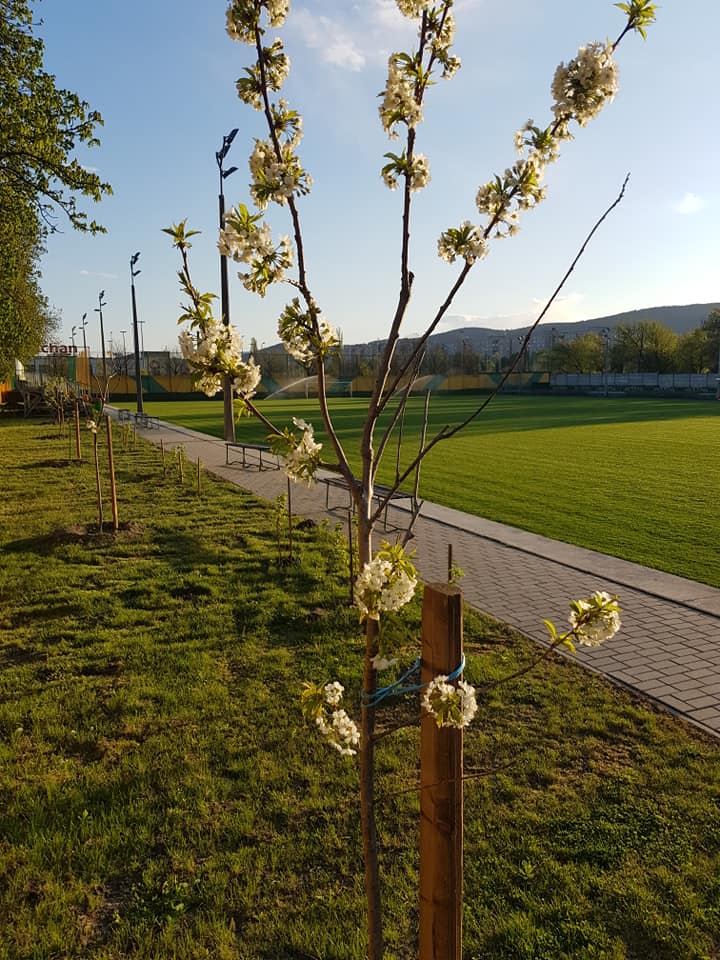Mivel jelen pillanatban izgalmasabb eseményt sajnos nem tudunk megosztani Veletek a Gáz-pályáról, ezért most érjétek be annyival, hogy az ősszel a lelátó mellé ültetett cseresznyefáink és ribizlibokraink virágoznak (azért ez is valami):