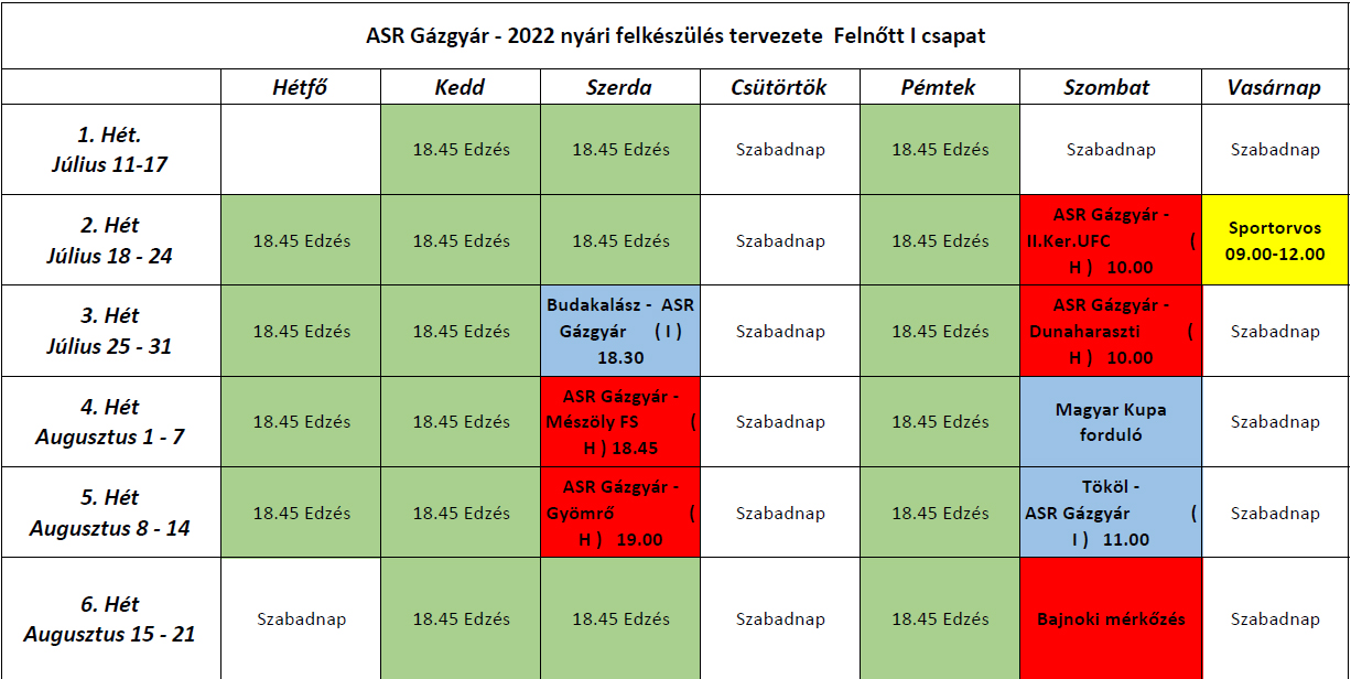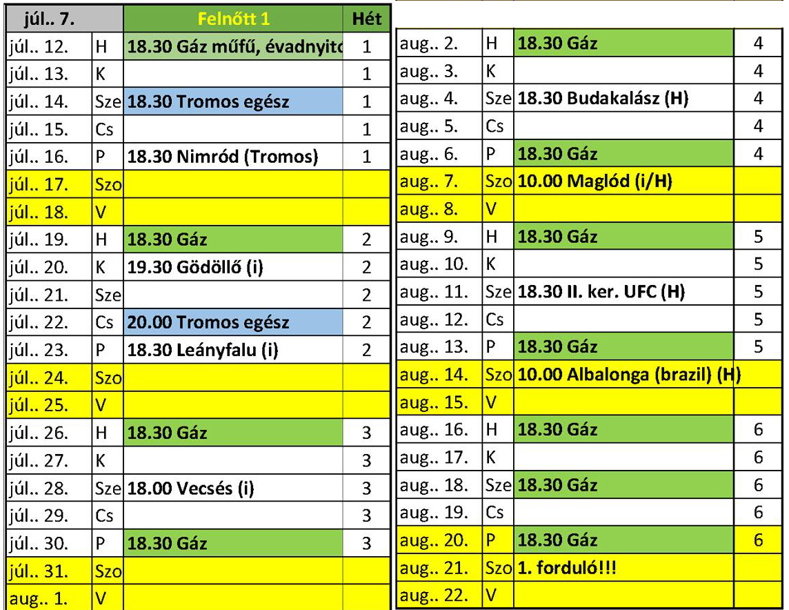 Első csapatunk felkészülési programjának aktuális állapota (07.16.): júl. 16. hétfő 18:30