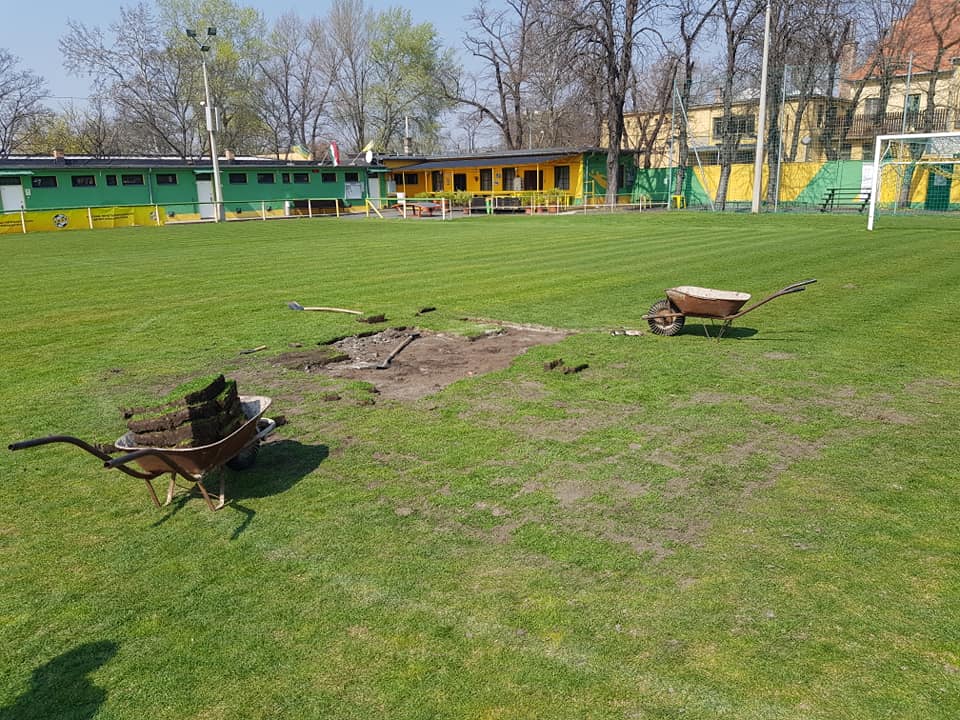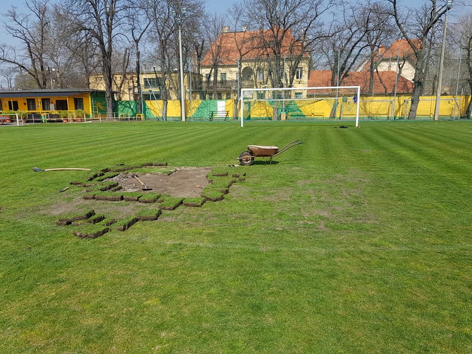 A kényszerszünet miatt előrébb hoztuk gyepfelújítási munkálatainkat: